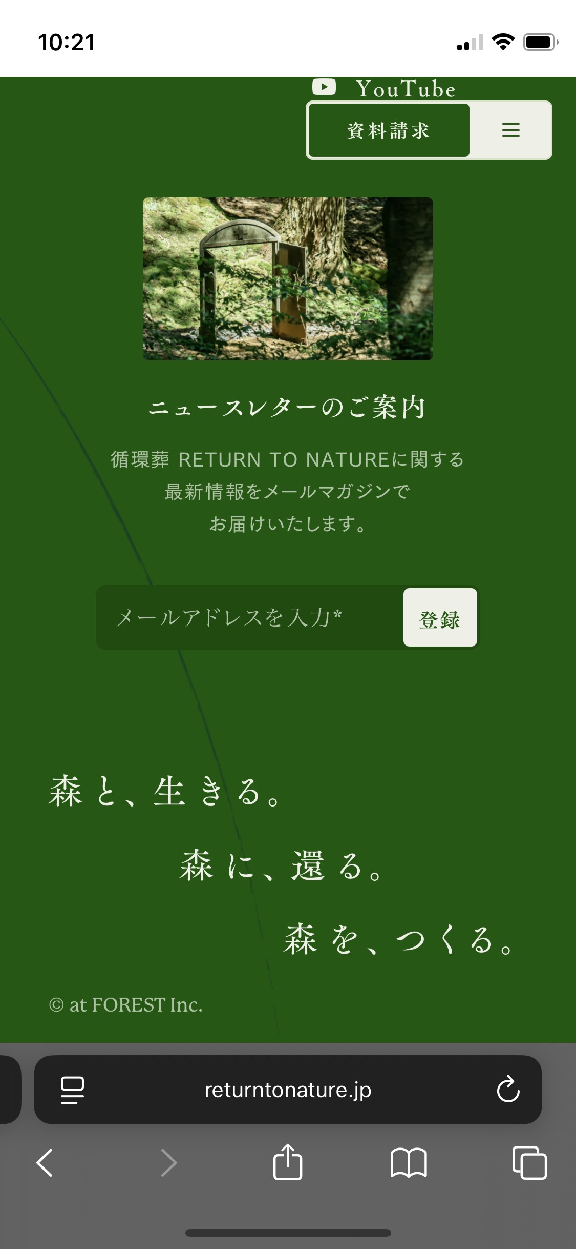 循環葬 RETURN TO NATUREのスマートフォンサイトデザイン