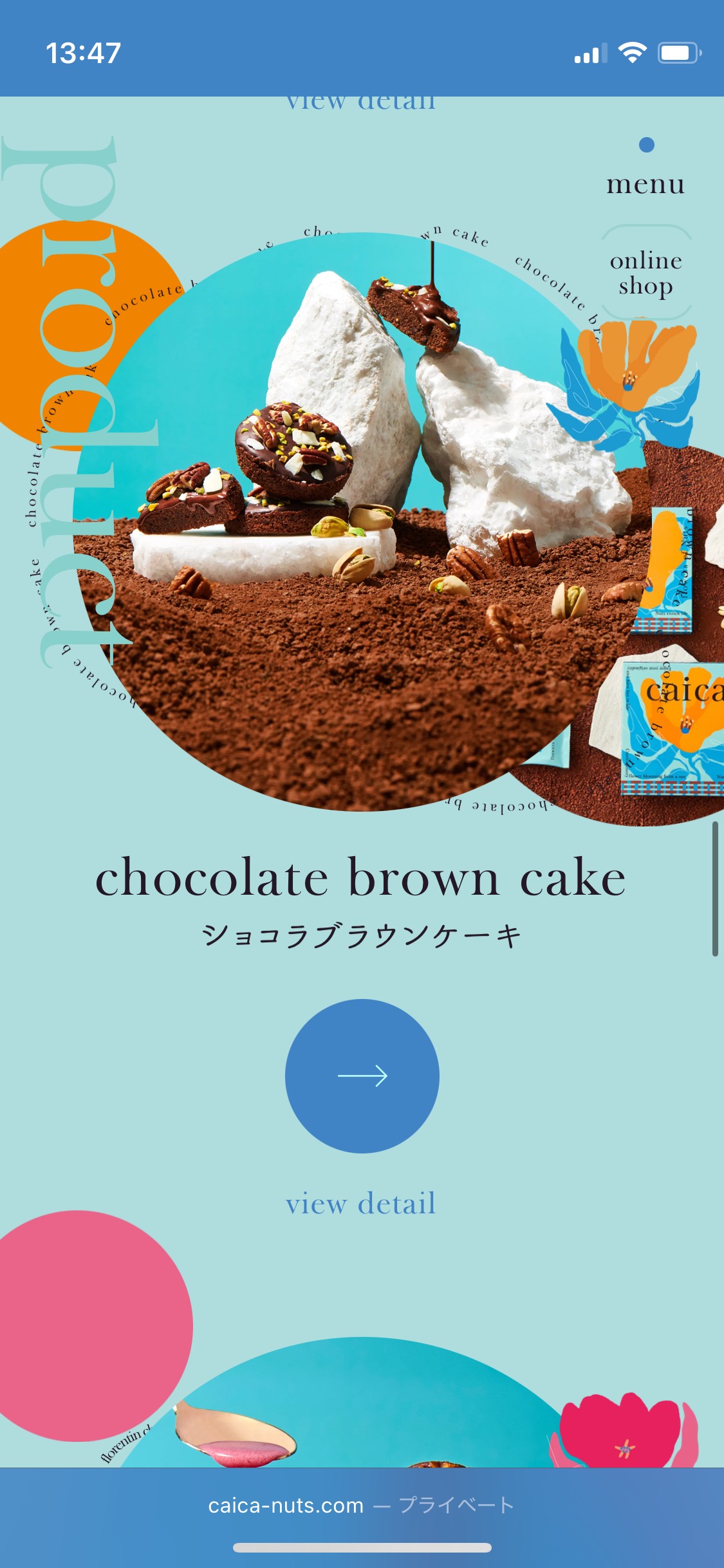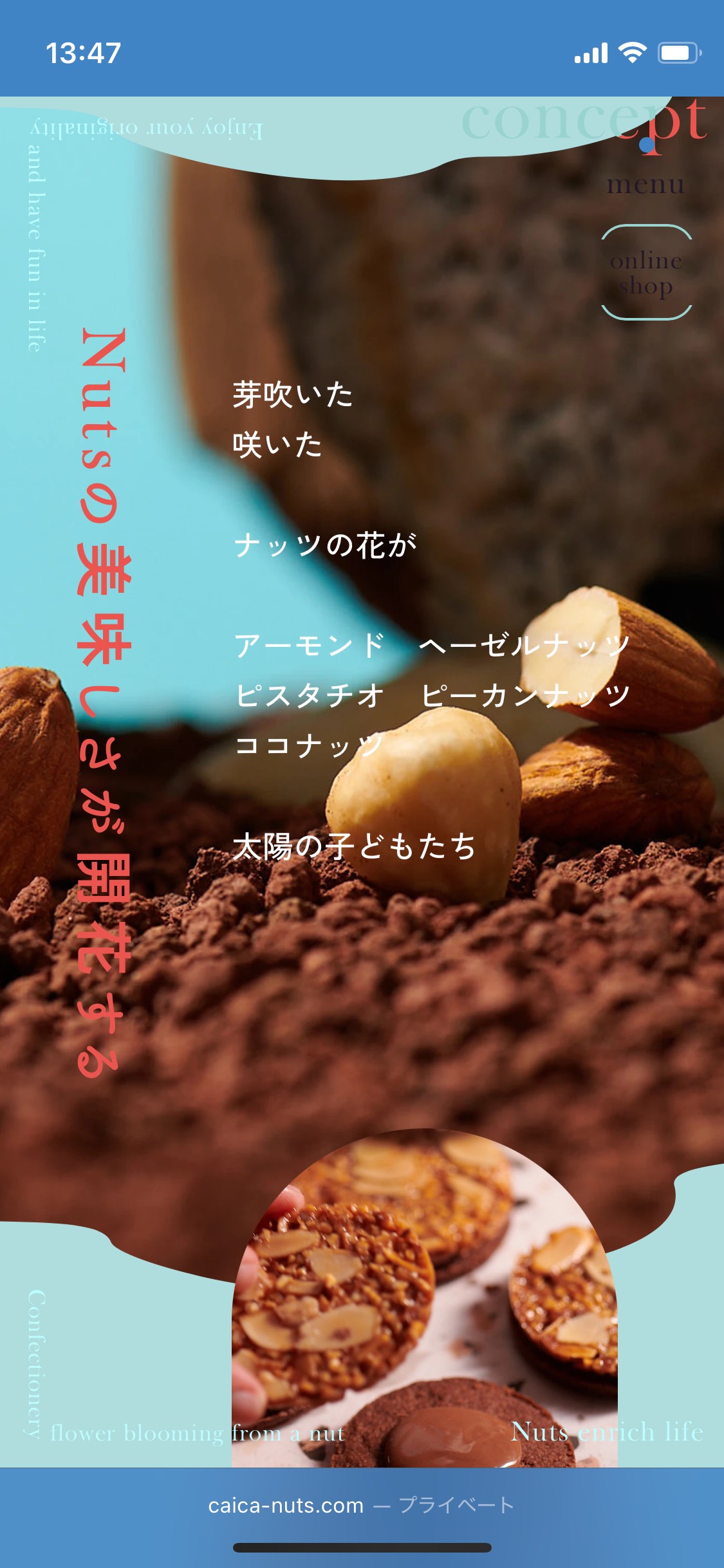ナッツの美味しさが開花する 【caica カイカ】花ひらくお菓子のスマートフォンサイトデザイン