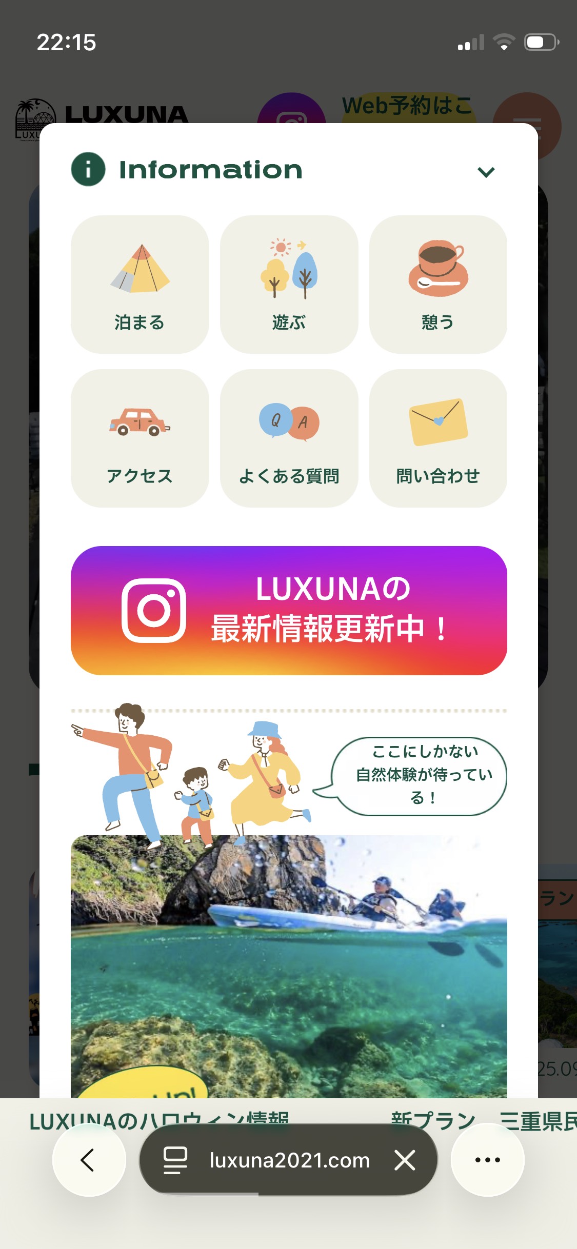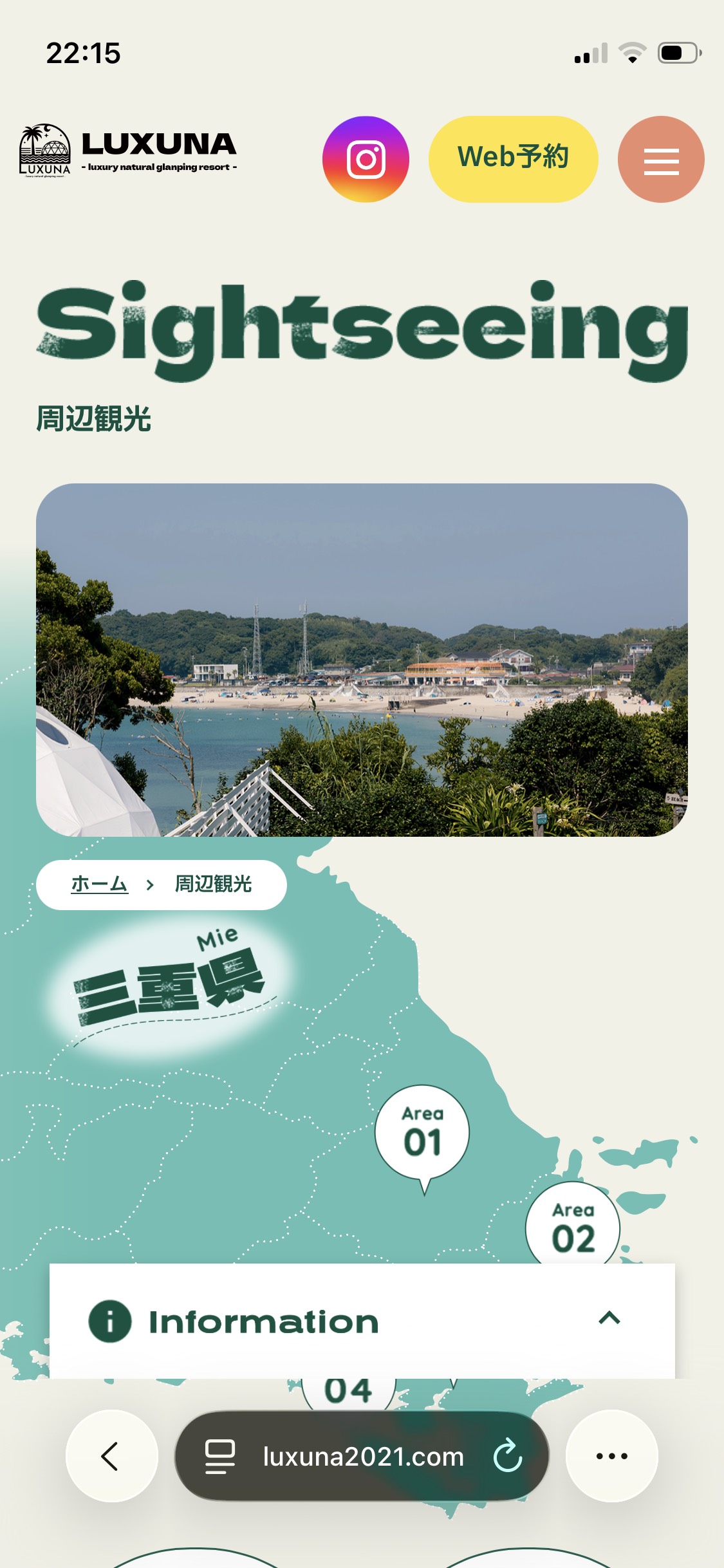 三重でグランピングやアクティビティが楽しめる施設|LUXUNA(ラグナ)伊勢志摩のスマートフォンサイトデザイン