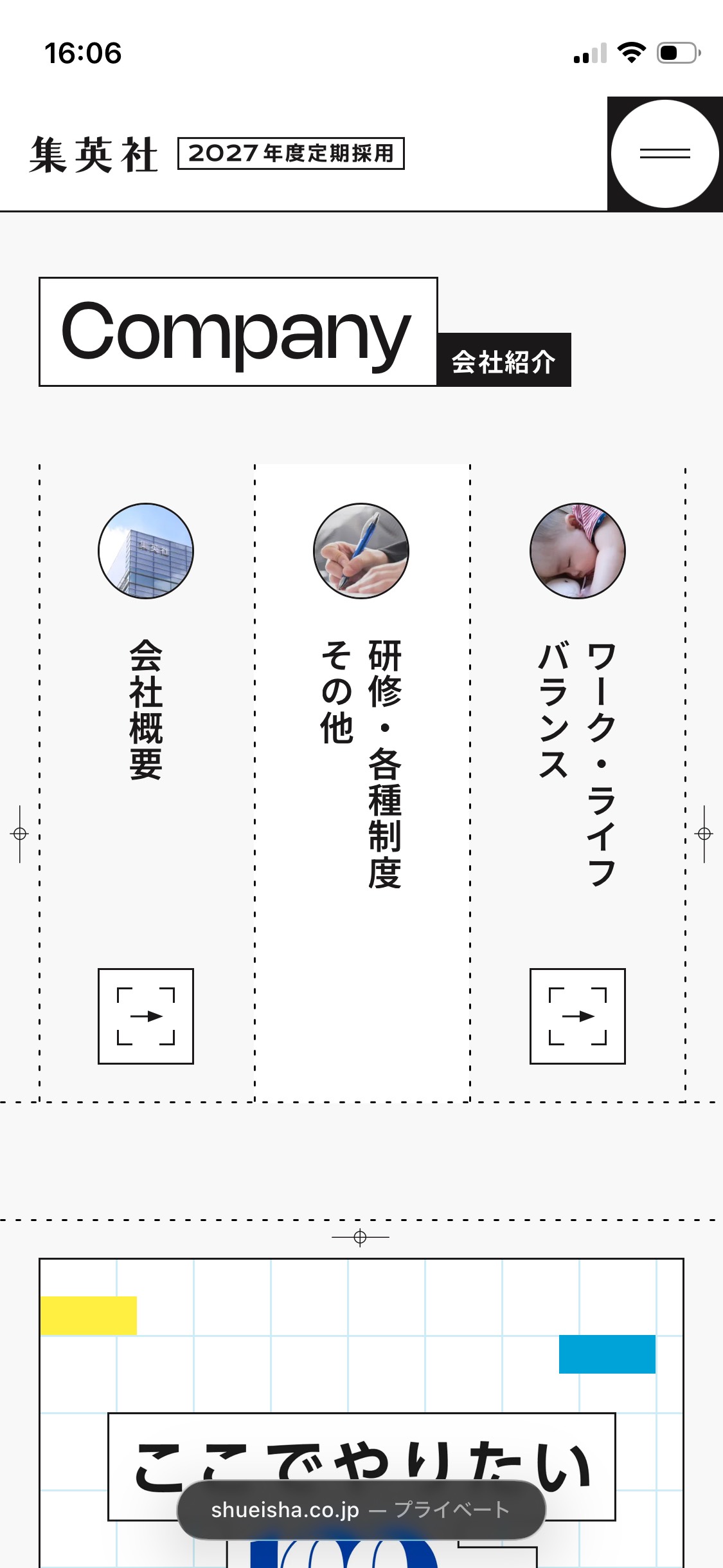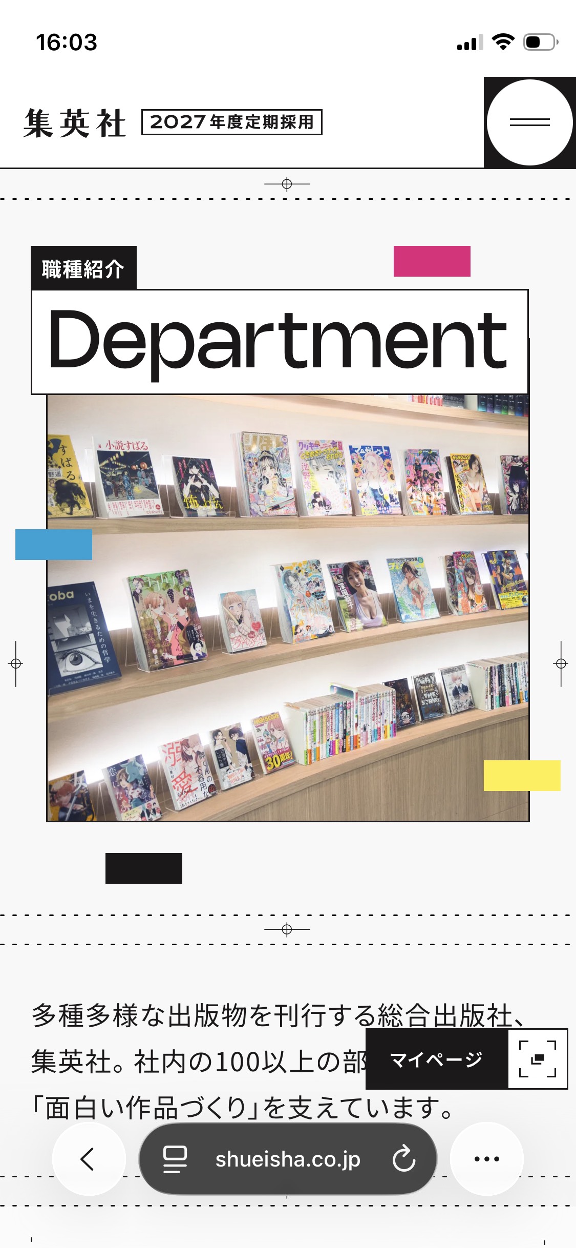 集英社 2027年度定期採用情報のスマートフォンサイトデザイン
