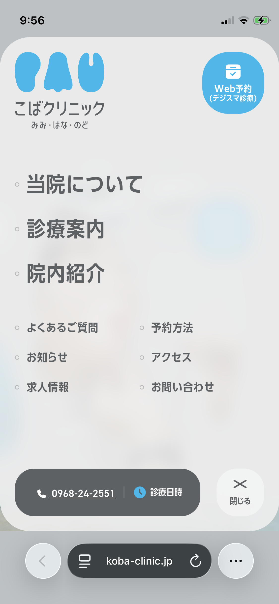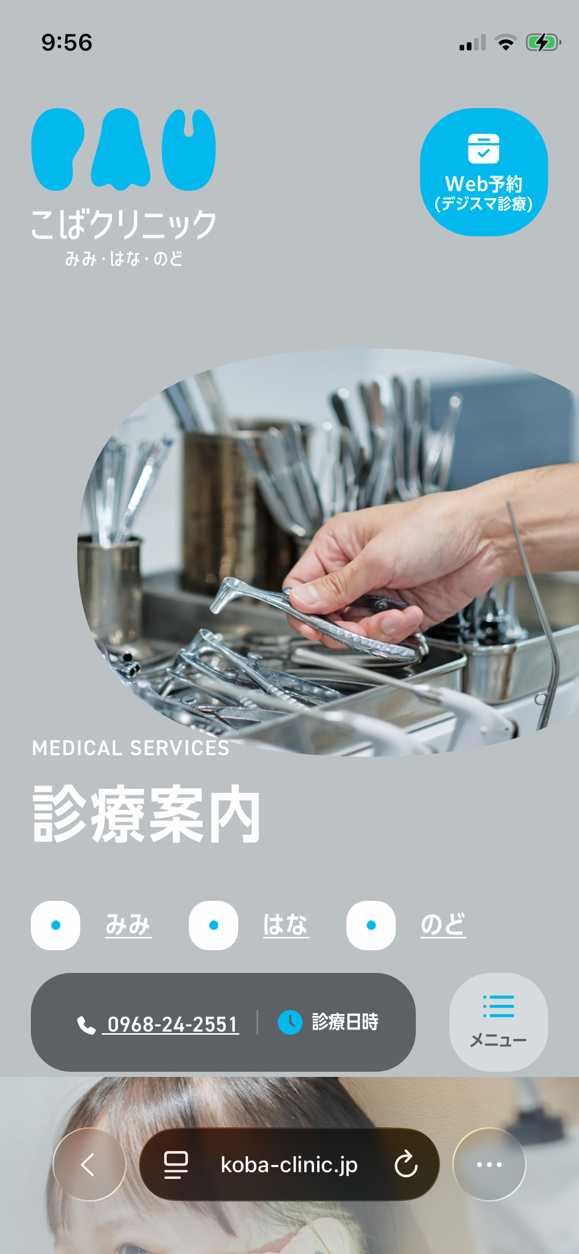 こばクリニック | 菊池市の耳鼻咽喉科クリニックのスマートフォンサイトデザイン