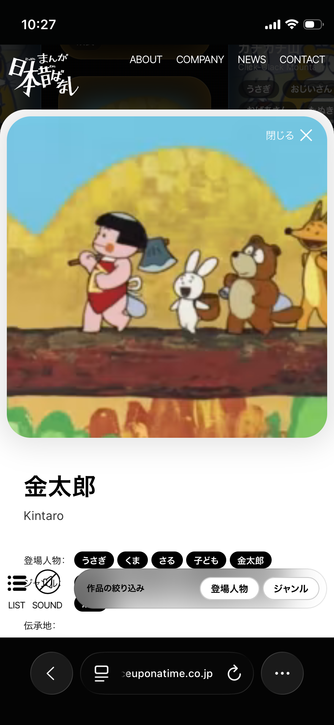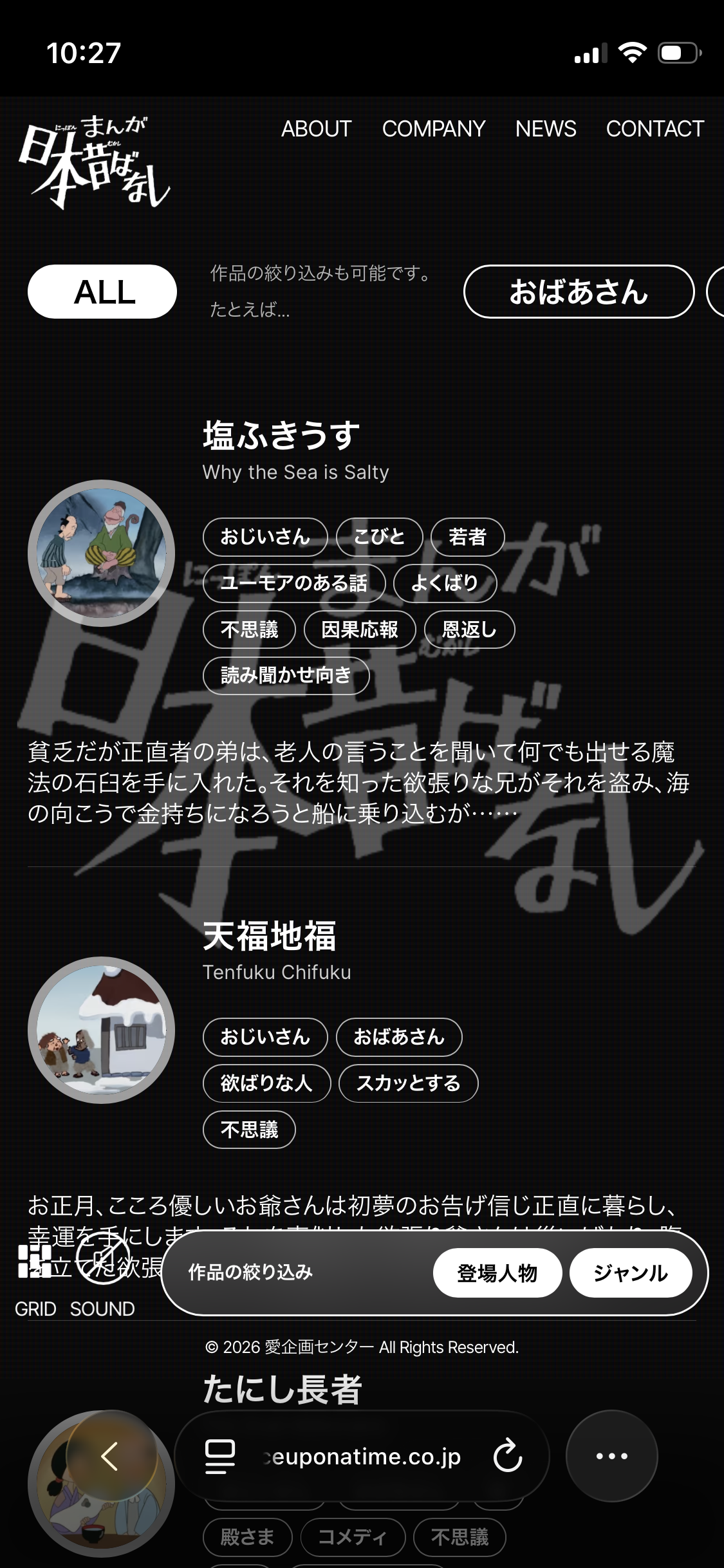 まんが日本昔ばなし【公式サイト】のスマートフォンサイトデザイン